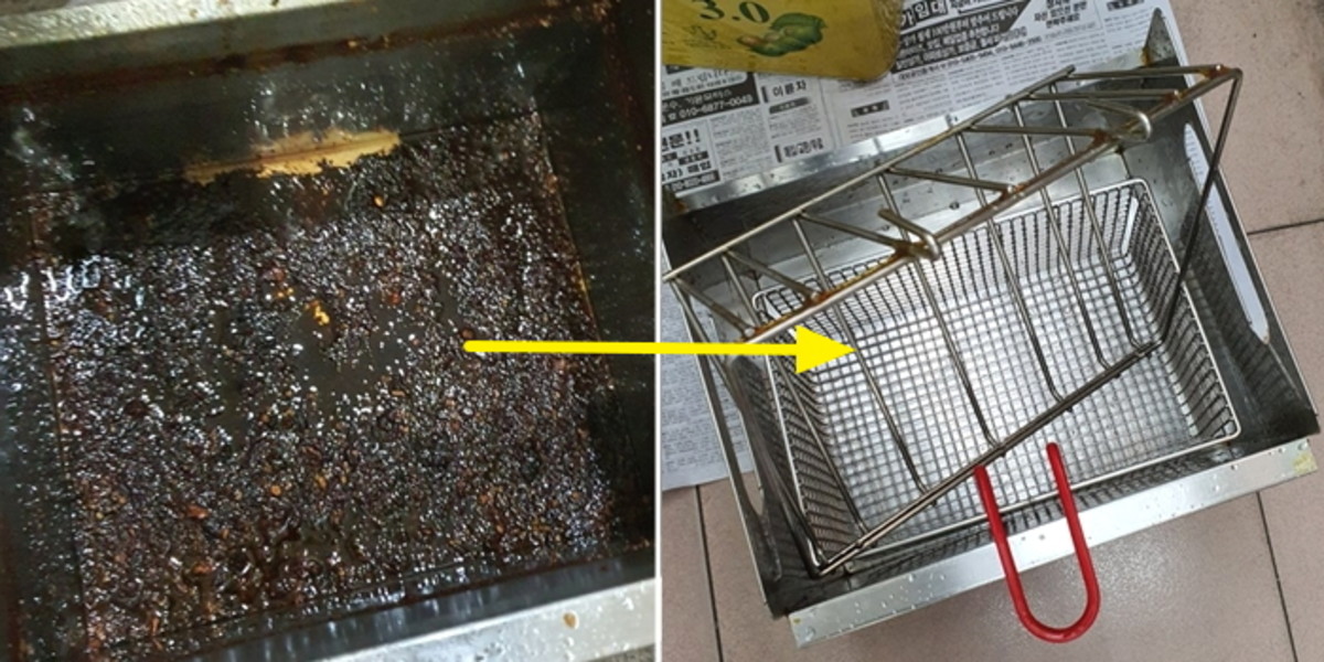 충격적인 위생 실태에 보다 못한 A씨가 직접 두 팔 걷고 기름 때를 닦아냈다. A씨는 글을 마무리하기 전에 은빛 스테인리스 소재 특유의 빛이 반짝이는 깔끔한 상태의 튀김기 사진도 첨부했다.