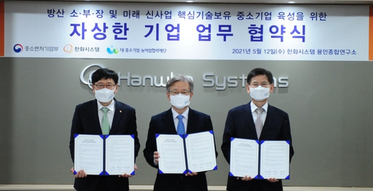 한화시스템은 중소기업벤처부(이하, 중기부)가 주관하는 '자상한 기업 2.0' 기업으로 선정돼, 중기부와 '신사업분야 핵심기술 보유 중소기업 발굴∙육성을 위한 업무 협약(MOU)'을 체결했다고 12일 밝혔다.