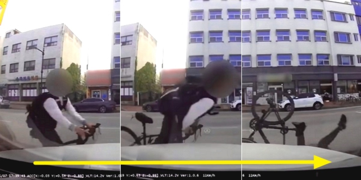 운전자는 시속 11km의 속도로 서행을 했다. 그러던 중 우회전을 받는 과정에서 앞만 보고 달려가던 자전거와 부딪혔다.
