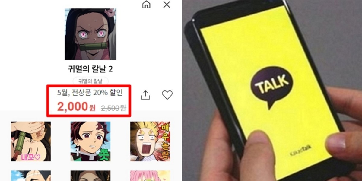 2,500원인 이모티콘을 5월 딱 한 달 동안만 20%(500원) 더 저렴하게 판매하는 것. 2019년 12월 인상 전인 2,200원보다도 200원 더 저렴하다.