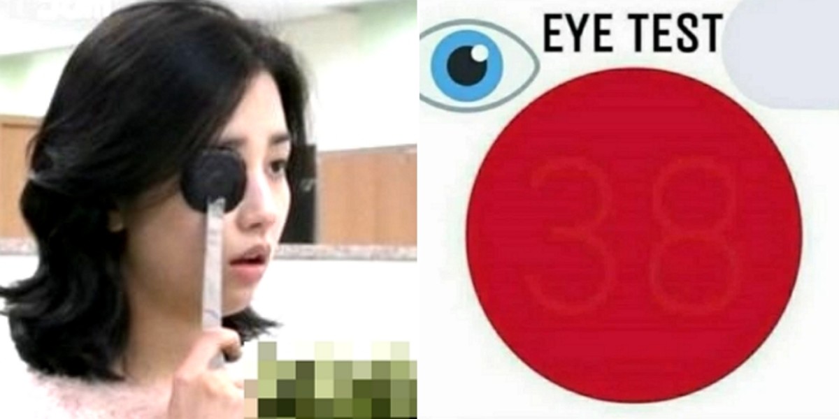 사진 속 빨간 동그라미를 들여다본다. 이때, 동그라미 안에 적힌 숫자가 38로 보인다면 정상이다. 양쪽 눈이 모두 건강하다는 신호니 안심해도 좋다.