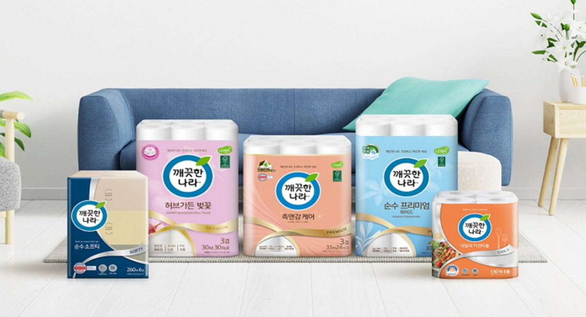 깨끗한나라는 국내 유일의 토종 생활용품기업으로 1997년 화장지 브랜드 '깨끗한나라'를 처음 선보였다. 이후 소비자에게 '부드럽고 깨끗한' 이미지를 전달하며 화장지 시장의 대표 브랜드로 자리매김했다. 깨끗한나라 화장지에는 고급 원단을 사용하고 독자적인 엠보싱 기술을 적용하여 부드러운 감촉과 흡수력을 높였다.