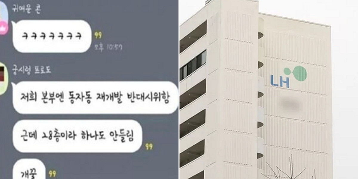 지난 17일 LH의 '감사 결과 처분요구서'에 따르면 LH 수도권주택공급특별본부 직원 A씨는 오픈 채팅방에서 "저희 본부엔 동자동 재개발 반대 시위함. 근데 28층이라 하나도 안 들림, 개꿀"이라고 말했다.