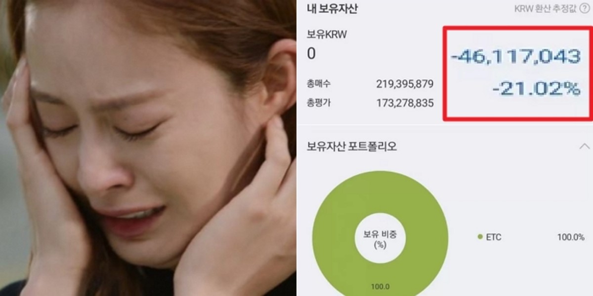 그가 하소연하며 올린 캡처 당시 기준 이더리움클래식의 가격은 약 11만원. 평가 금액은 약 1억 7천 3백만원으로 약 4천 6백만원의 손해를 봤다.