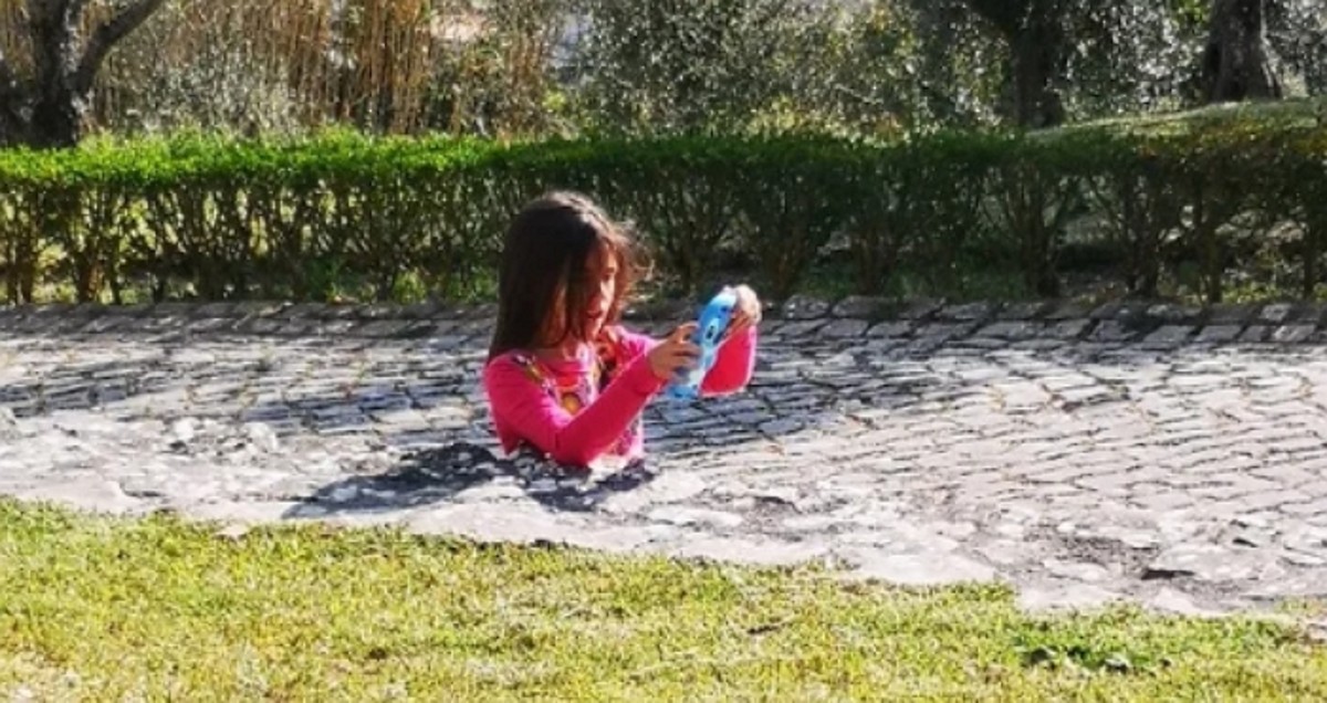 공개된 사진 속에는 푸른 잔디밭이 이어진 길 옆으로 하반신이 땅에 묻힌 것처럼 보이는 어린 소녀의 모습이 담겨 보는 이들을 경악게 만들었다.