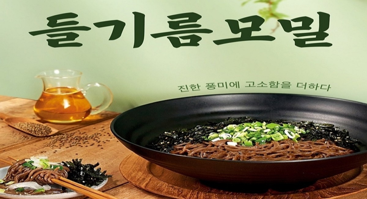 '들기름모밀'은 넉넉한 양의 메밀면에 자체 개발한 특제 간장소스와 들기름을 아낌없이 넣어 특유의 감칠맛과 입안 가득 퍼지는 고소한 향미를 즐길 수 있다. 여기에 얇게 슬라이스한 양파와 청양고추, 김가루를 더해 맛의 밸런스를 높인 점이 특징이다.