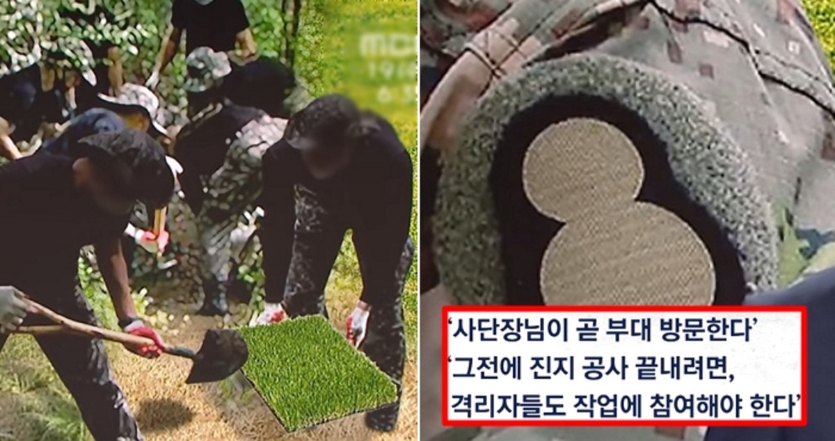 19일 MBC에 따르면 경기도 양주 위치한 8사단의 한 예하 부대는 얼마 전 새로 만든 작전 도로 주변 경사면에 잔디를 심으면서 격리 중이던 병사들까지 동원했다.