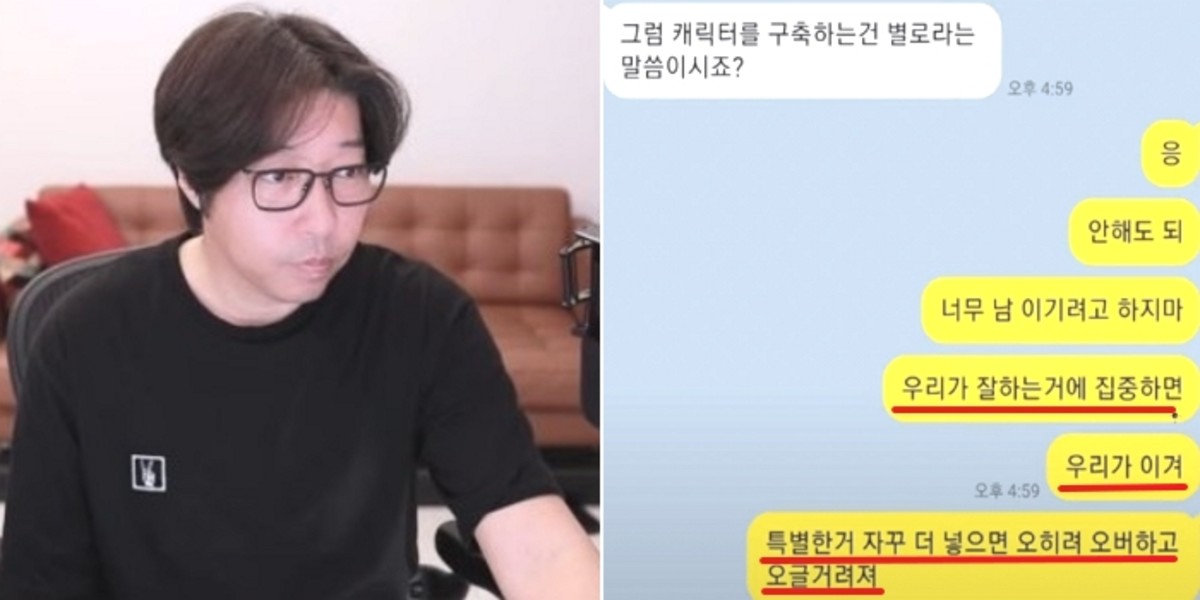 대도서관은 "항상 인트로를 잘 만들어. 밈이나 유행하는 거에 맞춰서 그 정도 넣어주는 게 좋아"라며 업무적인 부분을 지적했다. 또 의견을 구하는 직원에게 "너무 남 이기려고 하지마. 우리가 잘하는 거에 집중하면 우리가 이겨"라며 지시했다.