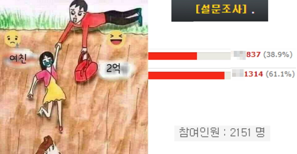 [인사이트] 김소영 기자 = "당신의 사랑하는 여자친구와 2억 원이 든 현금 가방이 악어떼가 있는 늪지에 빠지게 생겼습니다. 누구를 구할 건가요?"