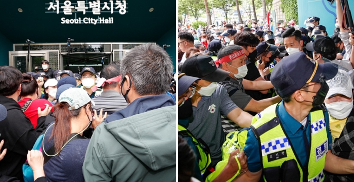[인사이트] 성동권 기자 = 서울시청이 집합금지 해제를 요구하는 시위로 인해 소동을 빚었다.