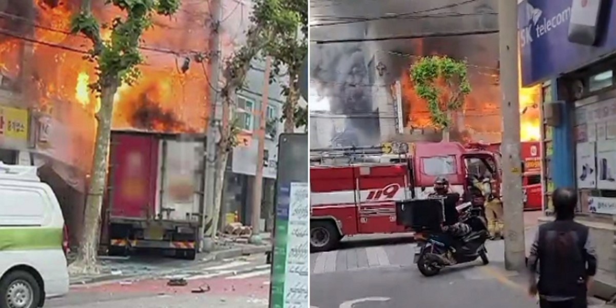 화물차 1대가 사고 충격으로 건물에 돌진하면서 시작된 불은 금새 화마가 돼 거세게 타올랐다.