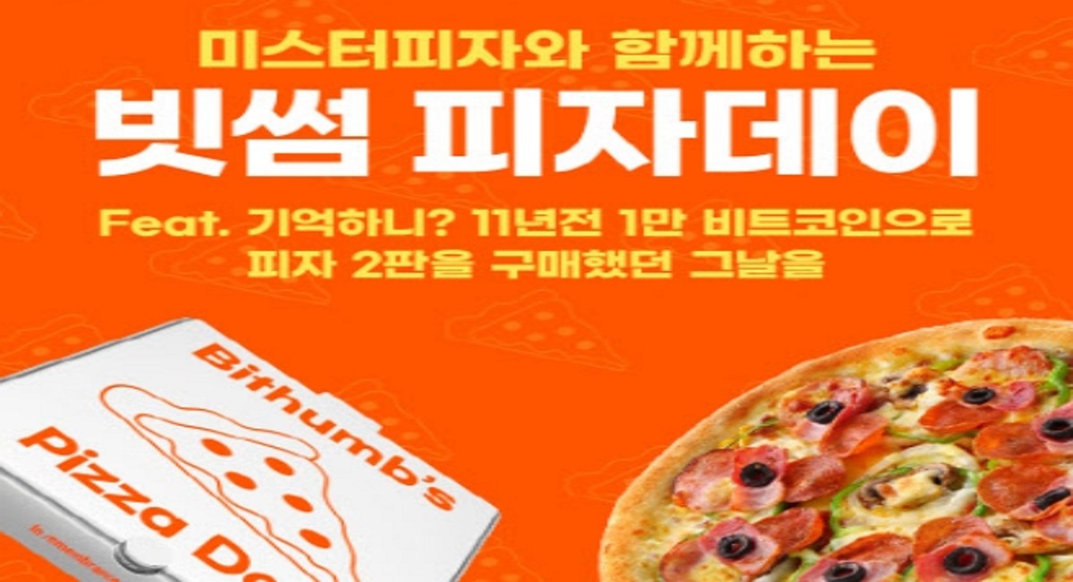 빗썸은 올해 비트코인 피자데이 파트너로 '미스터피자'를 선정하고 가상자산 투자자를 위한 푸짐한 이벤트를 준비했다.
