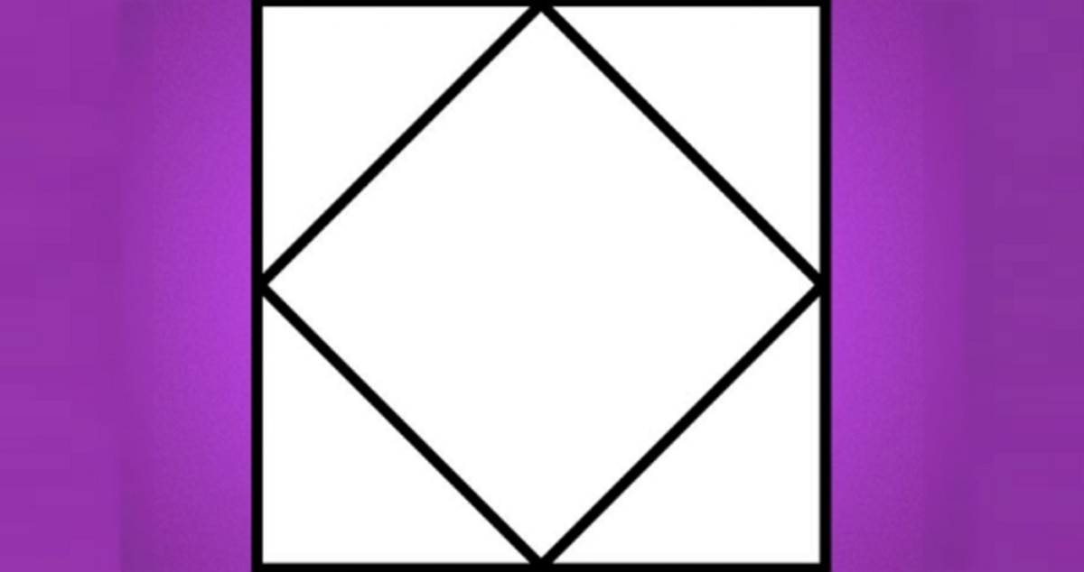 문제는 간단하다. 정사각형 안에 또 다른 정사각형을 그려넣은 그림에서 오각형을 찾아내기만 하면 된다.