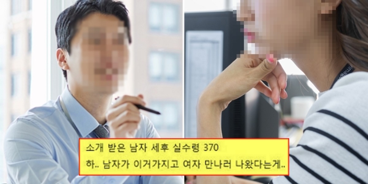 40살 남성을 소개 받았다는 여성 A씨는 "소개받은 남자 세후 실수령 370"이라며 본론을 시작했다.