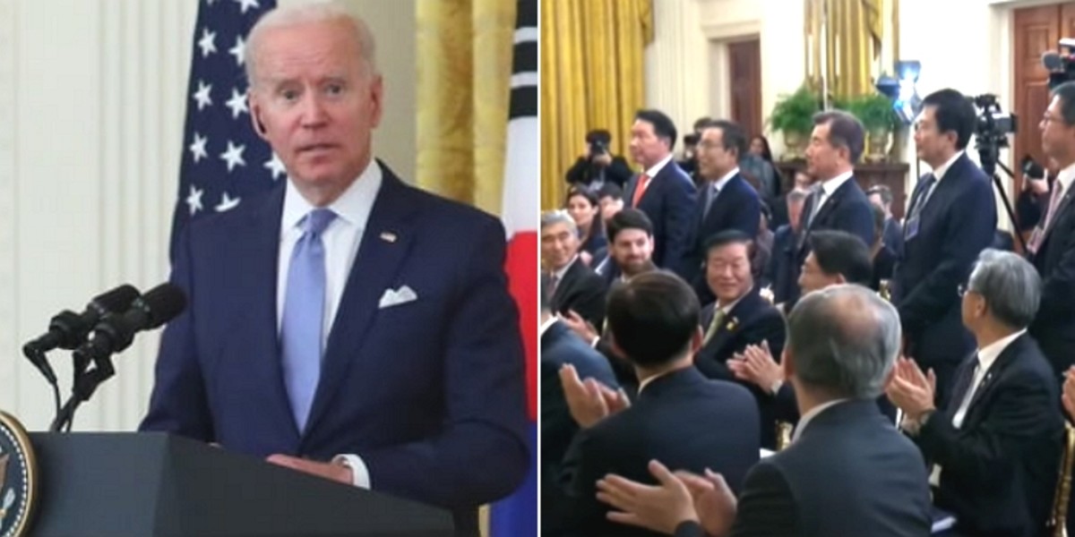 21일(현지시간) 바이든 대통령은 문재인 대통령과 한미 정상회담 후 공동기자회견에서 "미국에 400억달러 규모의 투자를 약속한 한국 기업에 감사하다"라고 말했다.