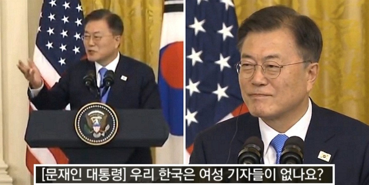 그 후 마지막 질문을 앞 둔 상황에서 문 대통령은 "여성기자... 손 들지 않았습니까...?"라고 발언했다.