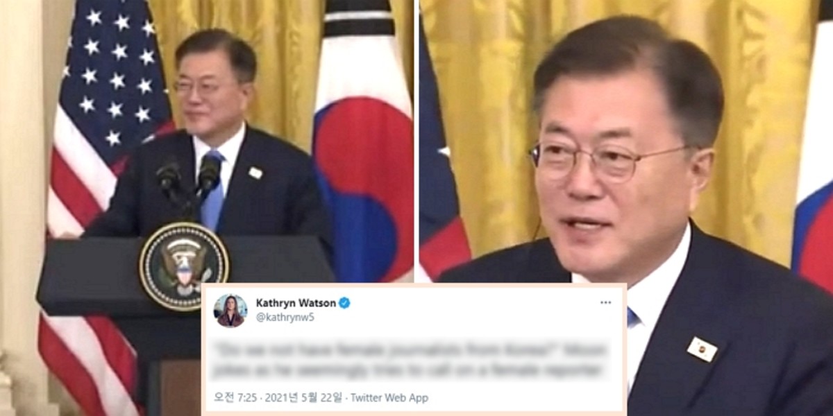 이를 두고 미 CBS 소속 백악관 출입 캐서린 왓슨 기자는 트위터에 "문재인 대통령이 여성 기자를 호명하려는 듯한 모습을 보이며 농담을 건넸다"라고 썼다.