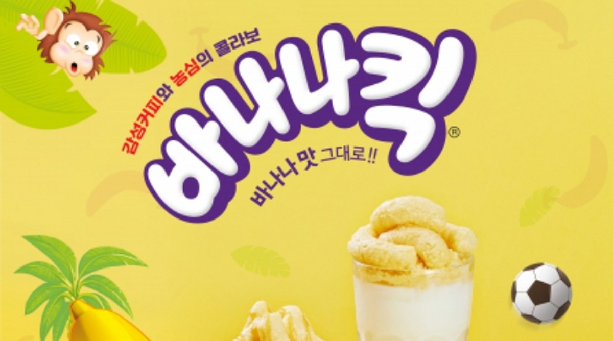 국민과자 바나나킥을 활용한 이번 신메뉴는 바나나킥 라떼와 바나나킥 카라멜쉐이크이다.