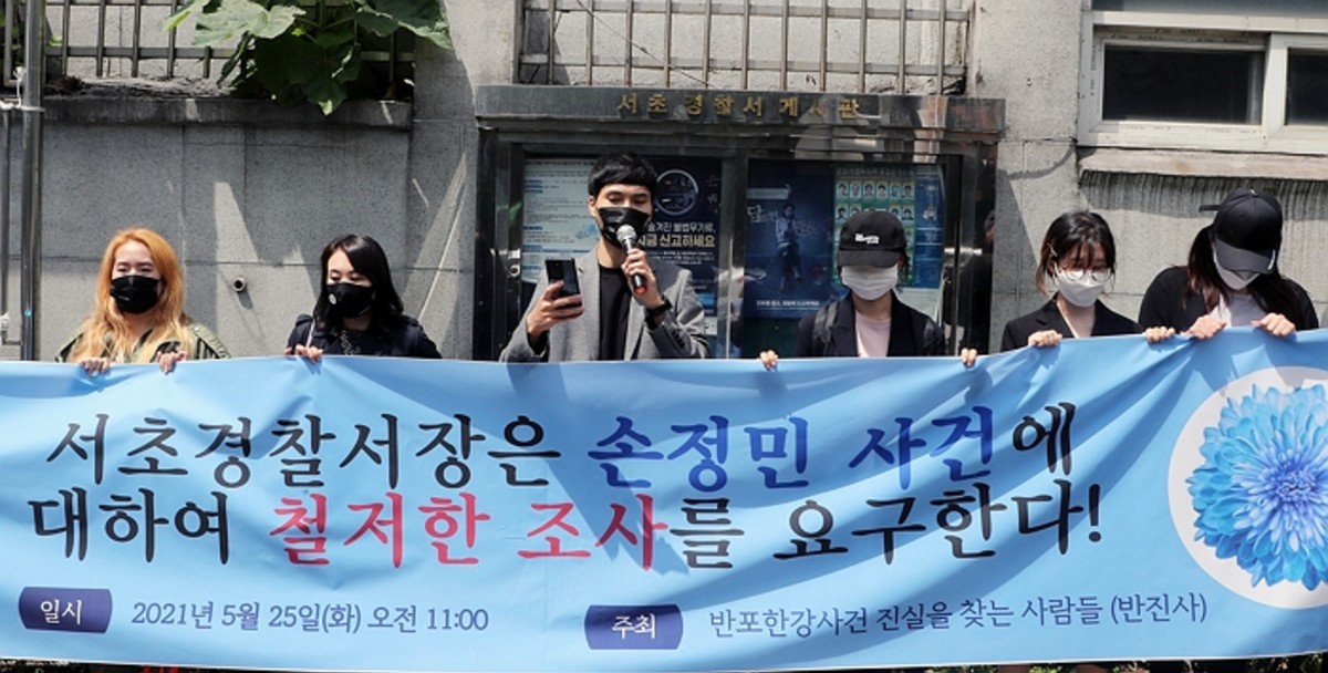 '반포한강공원 진실을 찾는 사람들'(반진사) 회원들은 25일 오전 11시 서울 서초경찰서 앞으로 모여들었다.