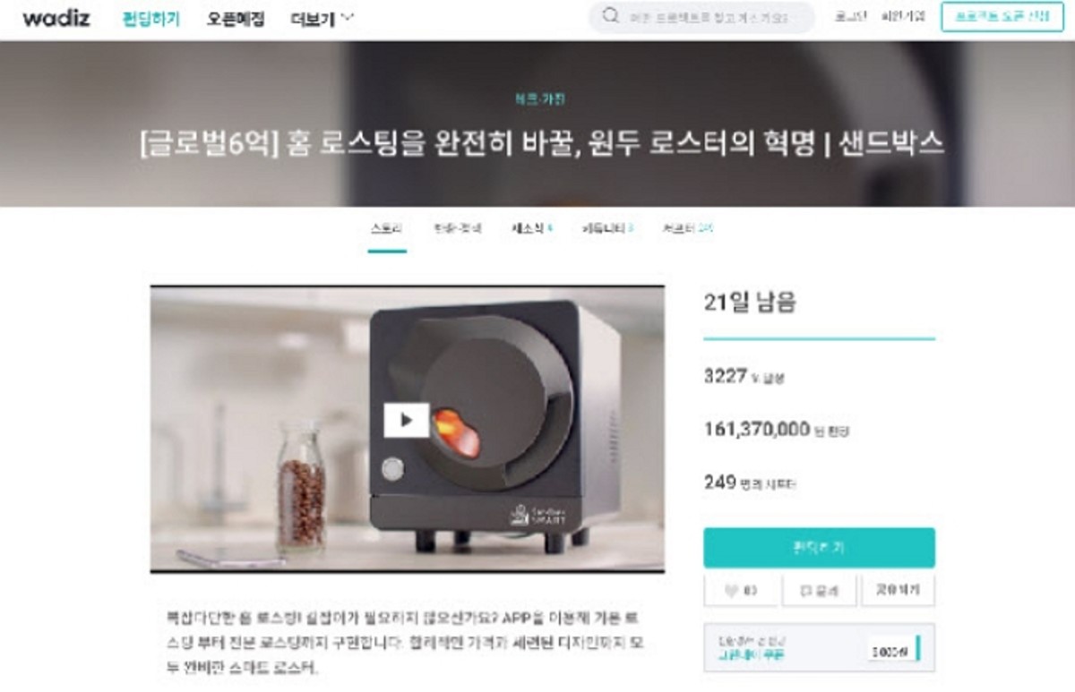 글로벌 펀딩 컴퍼니 '세토웍스'를 통해 국내에 처음 공개된 샌드박스 스마트 로스터는 홈 로스팅을 시작해보고자 하는 초보자뿐만 아니라 커피 전문가에게서도 호평을 끌어냈다. 와디즈에서는 오픈 한 시간 만에 1억 원의 펀딩액을 달성하기도 했다.