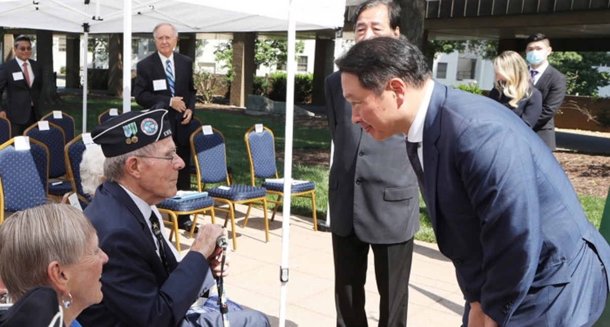 최 회장은 "한미 정상회담 기간 중 조 바이든 대통령이 올 해 94세인 조지아 출신 참전 용사에게 명예훈장을 수여하는 뜻 깊은 행사가 있었다"면서 "자유민주주의 수호를 위해 헌신한 노고에 대해 다시 한 번 감사드린다"고 고개를 숙였다.