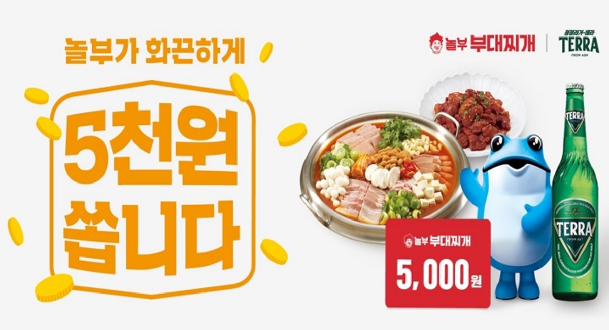 [인사이트] 김소영 기자 = 놀부부대찌개가 한정 메뉴 '부대&제육 반주세트'를 출시하며, 주문 고객에게 배달의민족 놀부부대찌개 5천 원 모바일 상품권을 100% 증정하는 이벤트를 26일부터 진행한다고 밝혔다.