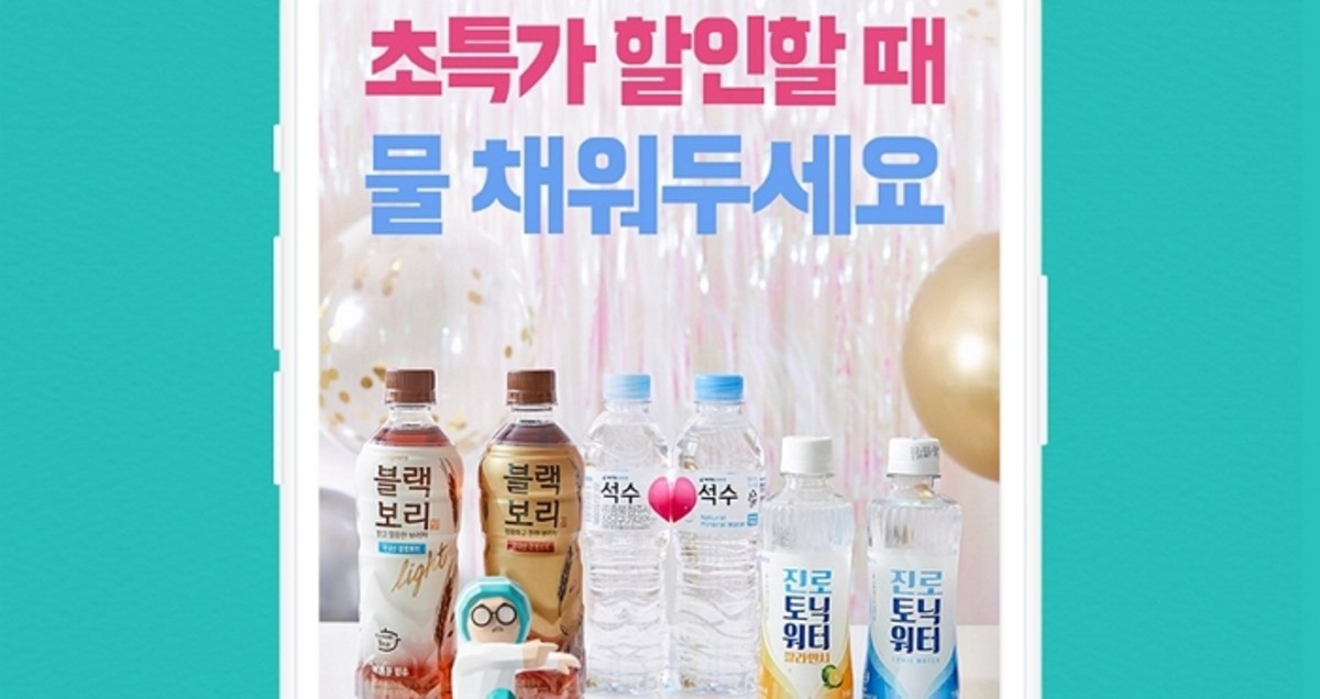판매 제품은 국내 최초 먹는샘물 브랜드이자 풍부한 미네랄과 목넘김이 좋은 '적당한 경수'의 천연암반수 '석수'와 깔끔하고 진한 세상 처음 까만 보리차 '블랙보리', 그리고 최근 MZ세대에서 '소토닉'이라는 맛, 멋, 재미의 음주 문화 트렌드를 만들어 가고 있는 '진로 토닉워터' 등 일상은 물론 홈파티와 캠핑에도 활용할 수 있는 생활필수음료 제품군으로 준비돼 있다.