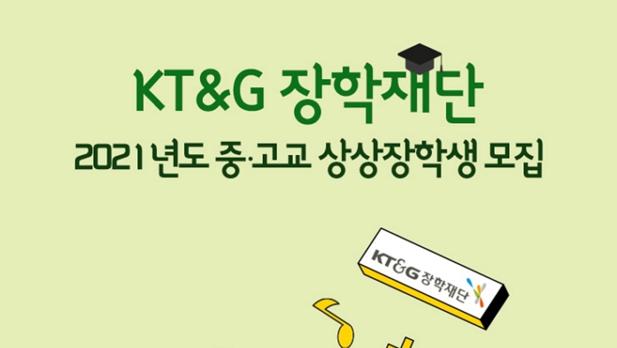 [인사이트] 함철민 기자 = KT&G장학재단이 경제적 어려움을 겪고 있는 중·고교생을 지원하기 위해 '2021년도 중·고교 상상장학생'을 모집한다고 밝혔다.