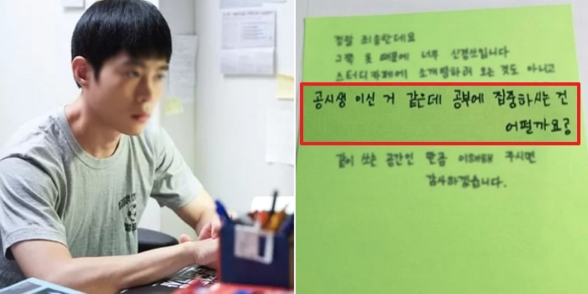 한 수험생이 잠시 스터디 카페에서 자리를 비운 사이 이런 내용의 쪽지를 받았다.