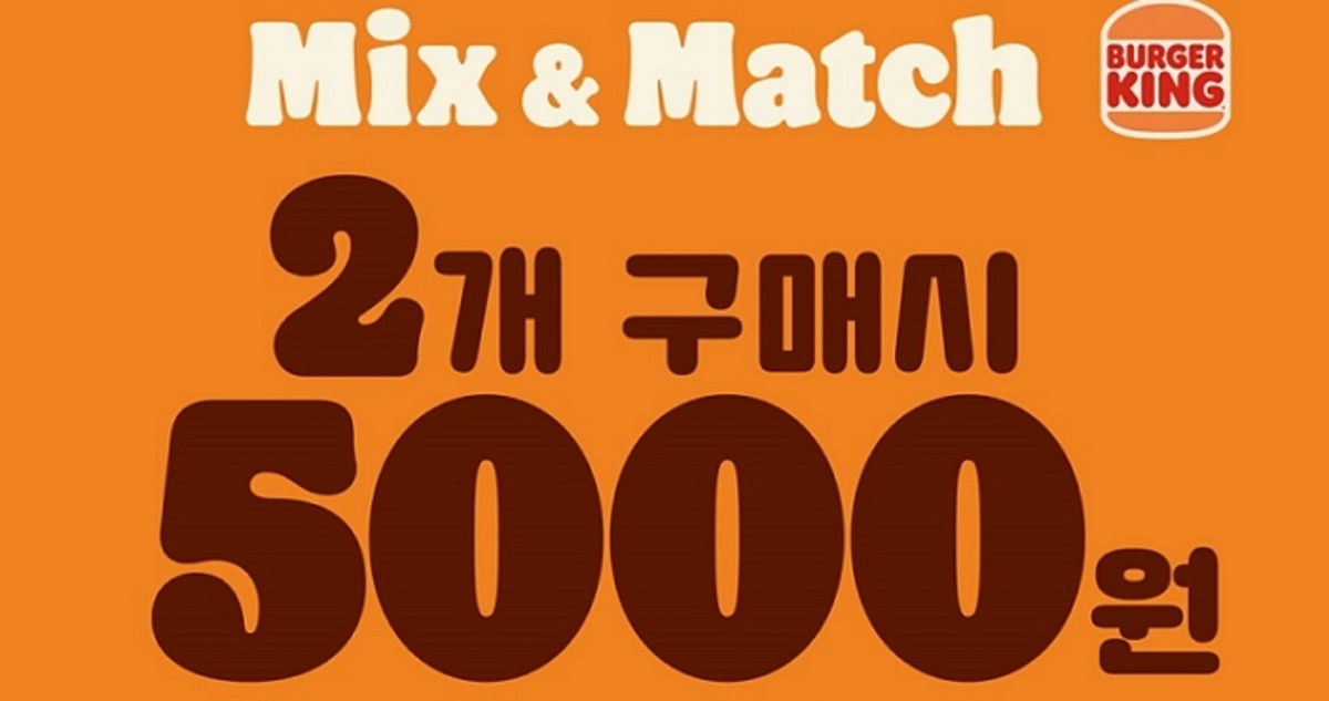 [인사이트] 김소영 기자 = 버거킹이 6월 6일까지 스테디셀러 버거 2종을 5,000원에 구매할 수 있는 '믹스앤매치' 프로모션을 실시한다고 밝혔다.