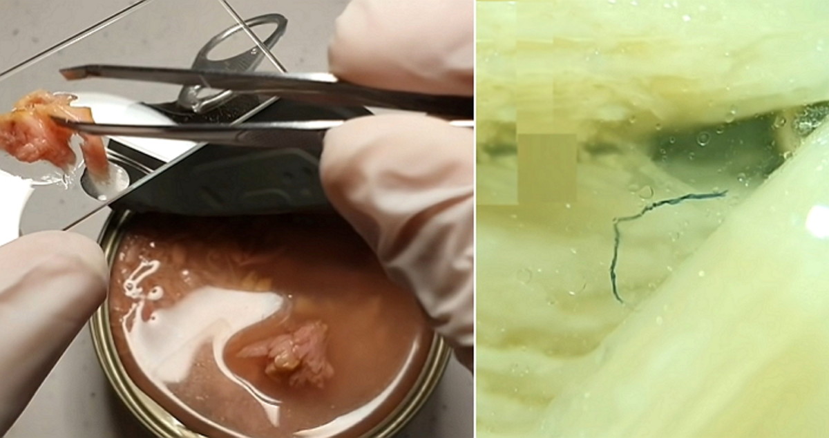 공개된 영상에는 참치캔 속 기름에 미세 플라스틱이 떠다니는 모습이 담겼다.