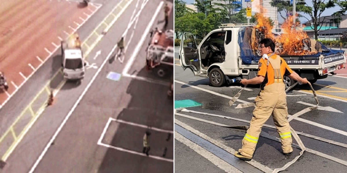 교통경찰관은 "근처에 덕진소방서가 있으니 곧장 가면 불을 빠르게 끌 수 있다. 침착하게 따라오라"고 운전자를 인도했다.