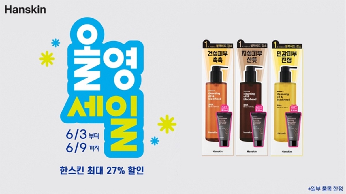 한스킨 관계자는 "클렌징오일&블랙헤드 제품이 큰 사랑을 받으며 '블랙헤드 클렌징 잘하는 한스킨'이라는 평을 받아왔다. 클렌징 오일 뿐만 아니라 다양한 블랙헤드 클렌징 라인이 올리브영 온·오프라인에서 판매되고 있다"며 "이번 올영세일을 통해 더 많은 소비자들이 한스킨의 블랙헤드 클렌징 라인으로 클렌징 루틴 시작해 보시길 바란다"고 전했다.