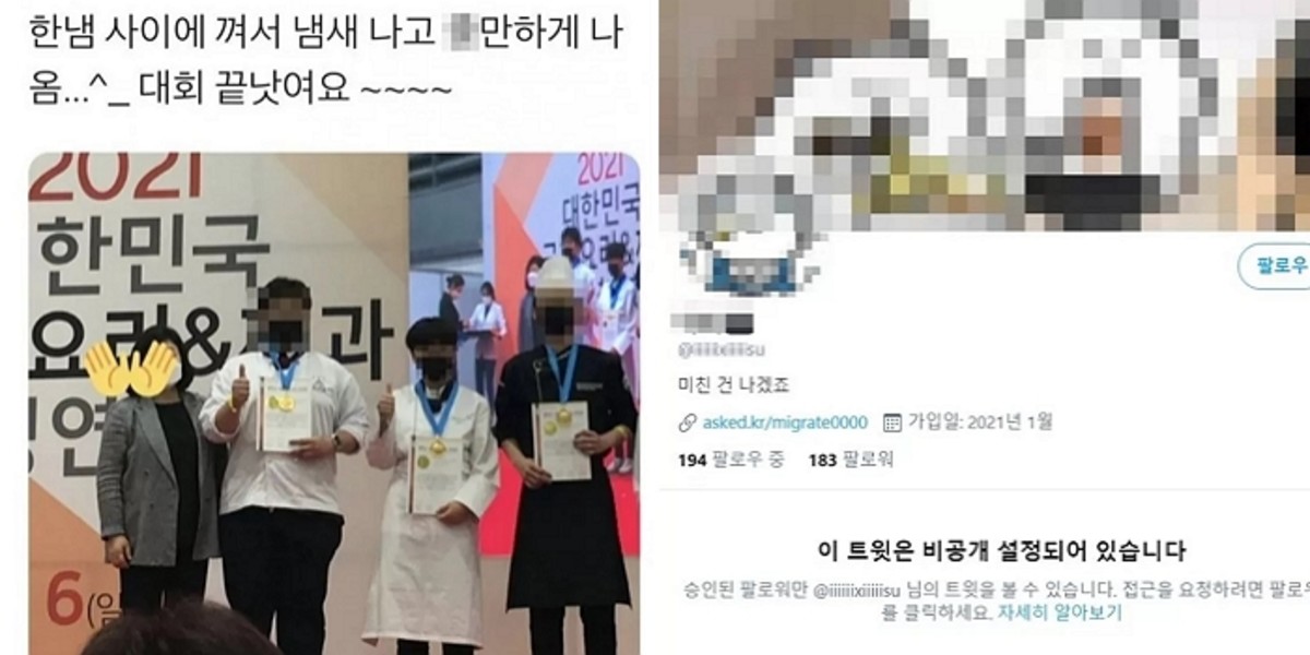 '2021 대한민국 국제요리 & 제과 경연대회' 참가자로 확인된 그는 트위터에 대회가 끝났다며 글 하나를 올렸는데, 여기서 쓴 표현이 문제가 됐다.