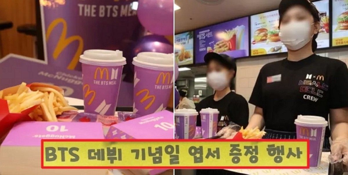 공개된 글에 따르면 맥도날드는 오는 6월 12일부터 13일까지 BTS 데뷔 기념일을 맞이해 'BTS세트'를 구매하는 고객들에게 '생일 축하 메시지'가 담긴 보라색 엽서를 제공할 예정이다.