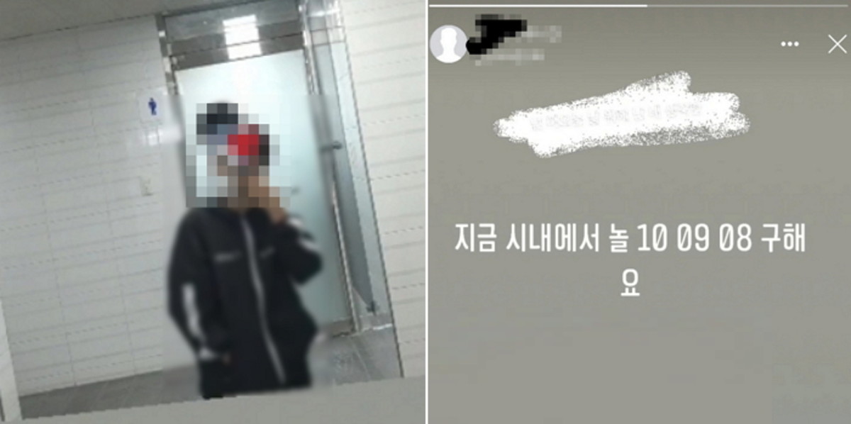 한 2010년생인 초등학생은 인스타스토리에 화장실에서 촬영한 자신의 사진을 올려놓았다.