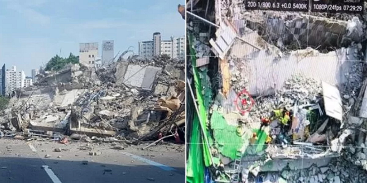 소방당국은 차량 3대에 탄 승객과 운전자, 철거 작업 중이던 근로자가 매몰된 것으로 추정하고 있다.