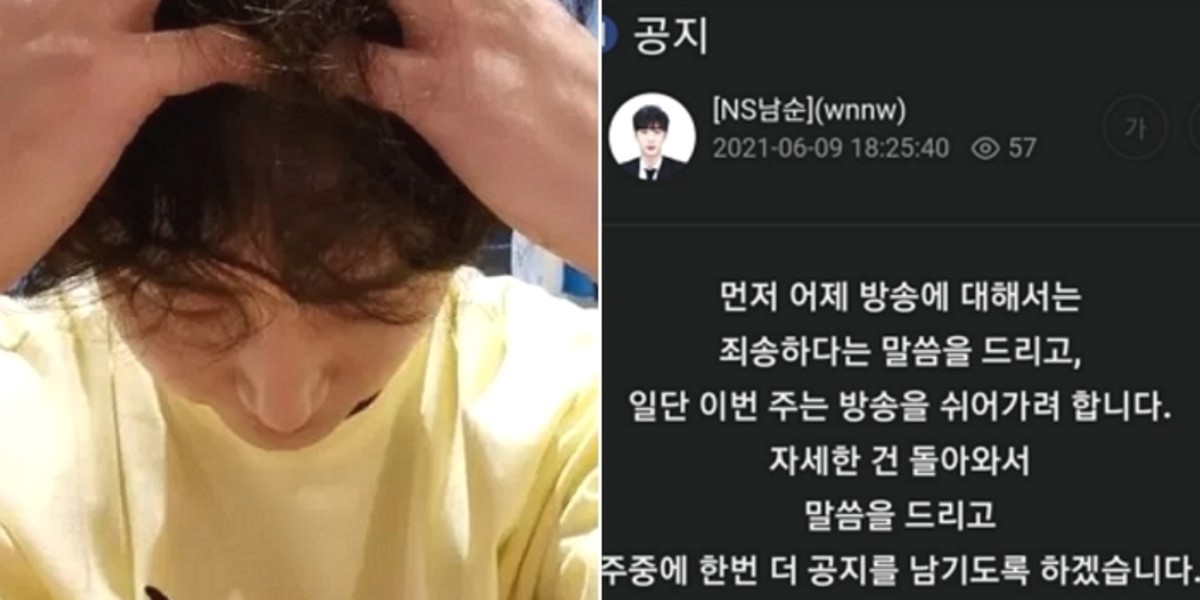 이날 저녁 남순은 "먼저 어제 방송에 대해서는 죄송하다는 말씀을 드리고, 일단 이번 주는 방송을 쉬어가려 합니다"라고 밝혔다.