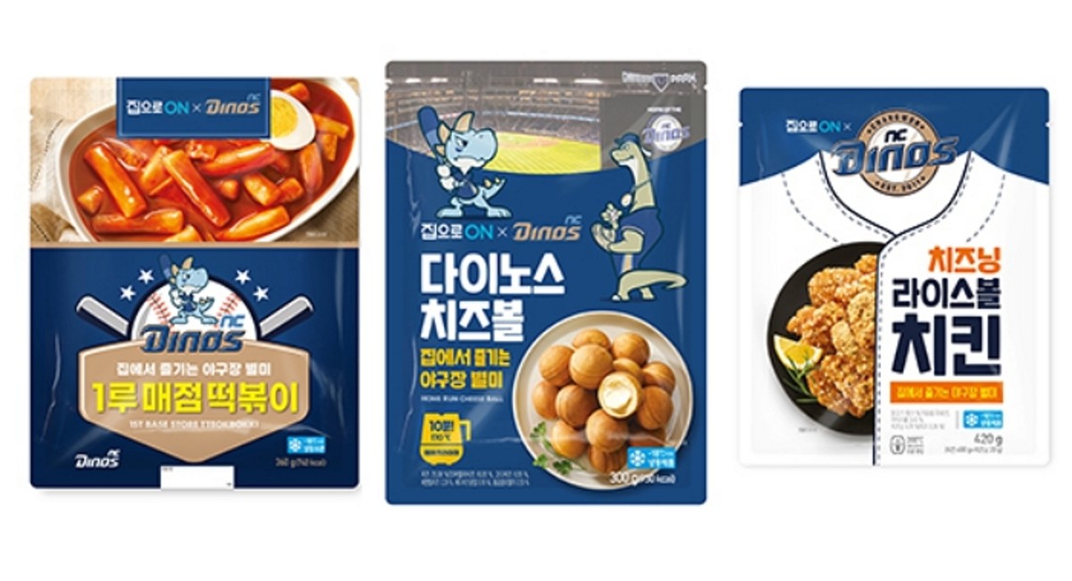 '집으로ON X NC 다이노스' 간편식 3종은 남녀노소 누구나 좋아하는 국민간식 '1루 매점 떡볶이', 그리고 담백하게 구운 '다이노스 치즈볼'과 바삭한 식감이 돋보이는 '치즈닝 라이스볼 치킨'이다.