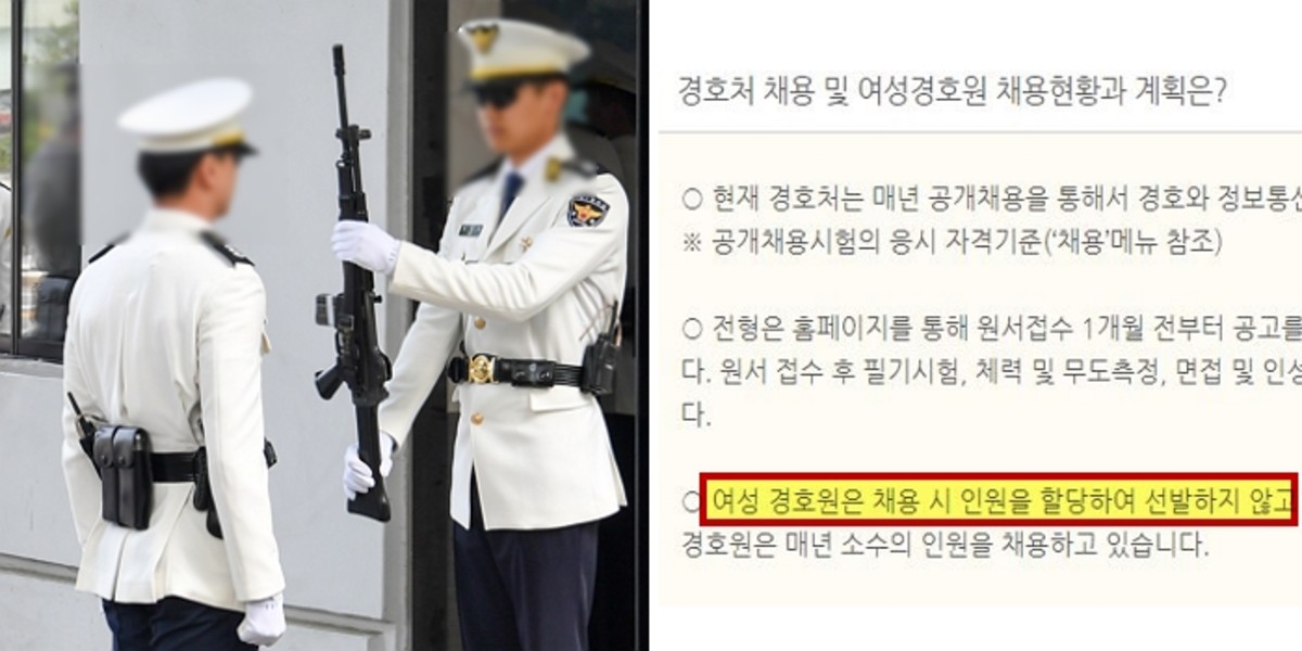 청와대 경호처 홈페이지 내 FAQ 페이지에는 "경호처 채용 및 여성 경호원 채용 현황과 계획은?"이라는 질문에 대한 청와대 경호처의 답변이 소개돼 있다.