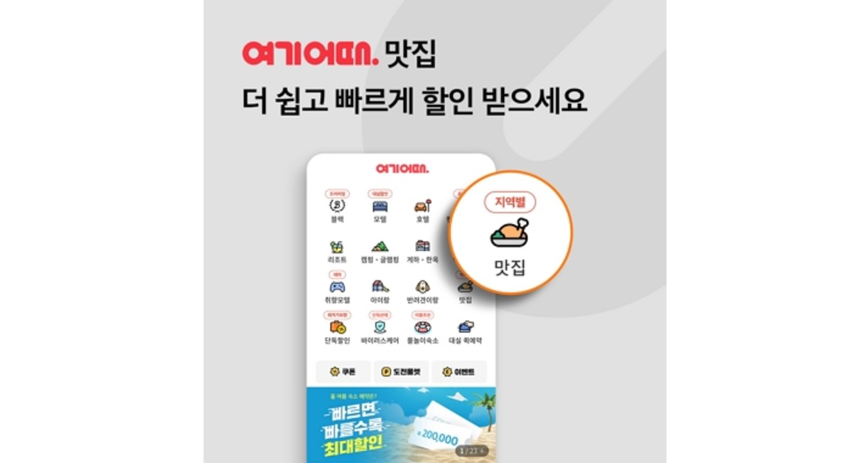 여기어때는 10일 맛집 카테고리의 상품과 콘텐츠 노출을 거리순으로 바꾸고, 지역 맛집 리스트를 확대했다고 밝혔다.