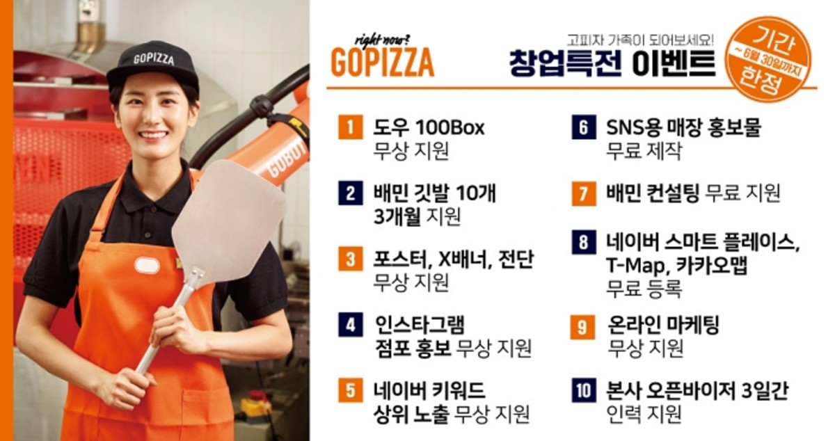 [인사이트] 김소영 기자 = 고피자가 6월 30일까지 매장 신규 오픈을 계약하는 점주에게 1천만원 상당의 혜택을 제공하는 창업 특전 이벤트를 진행한다고 밝혔다.