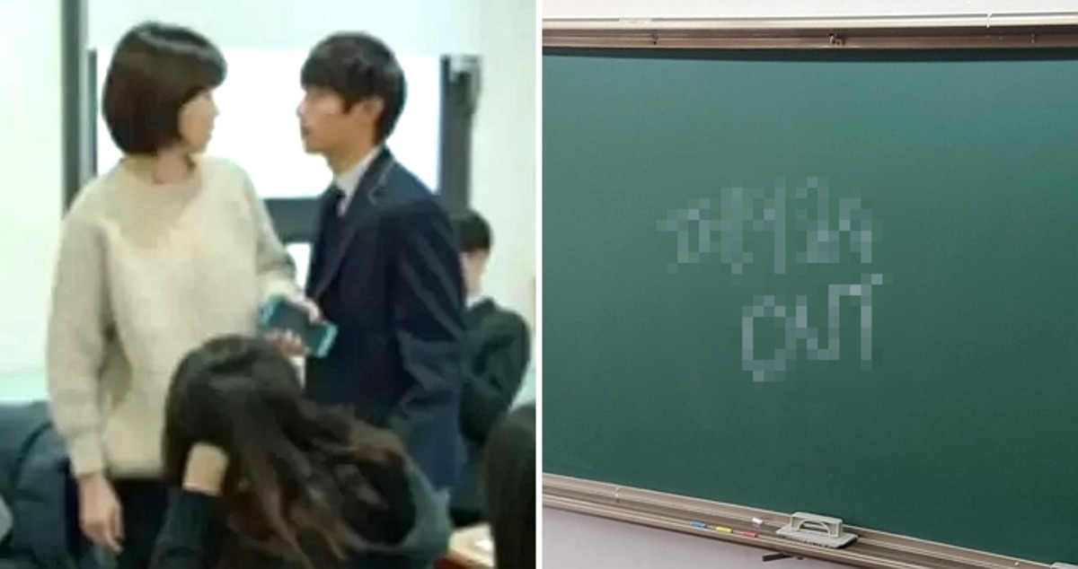 한 여학생이 선생님이 오기 직전 해당 문구를 지우면서 사건을 일단락됐다.