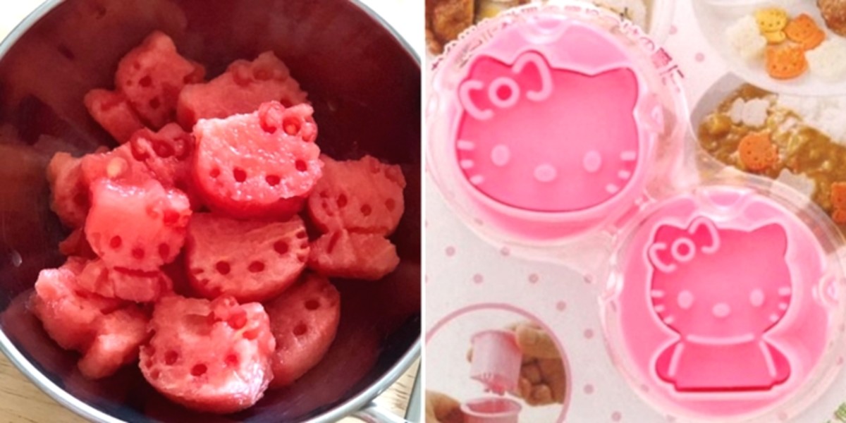 이 헬로키티 모양 커터만 있으면 간편하게 귀여운 키티 모양 수박을 뚝딱 만들어 낼 수 있다.