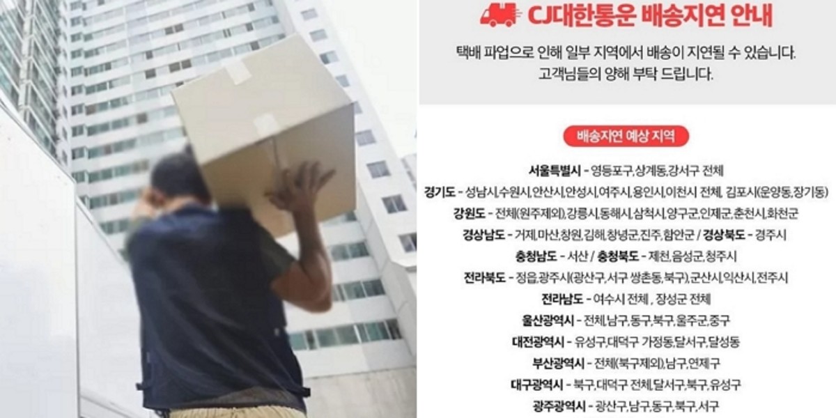 국내에서 가장 많은 택배 물량을 처리하는 CJ대한통운은 서울에서는 영등포구, 상계동, 강서구 전체에서 택배가 지연되고 있다.