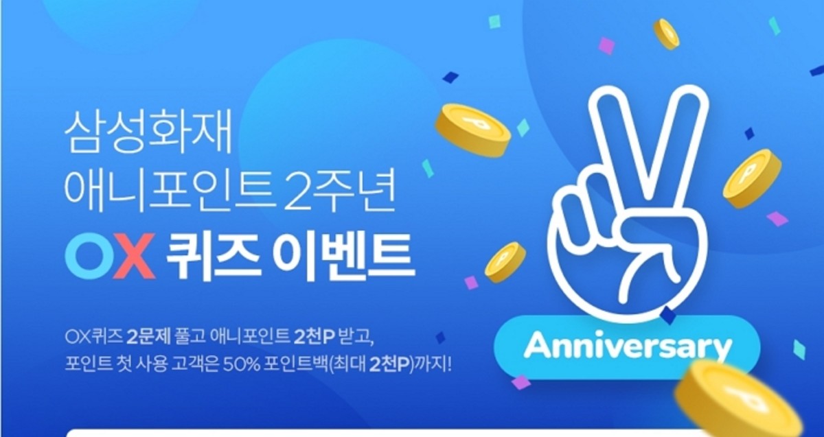 [인사이트] 전준강 기자 = 삼성화재는 이번 달 30일까지 애니포인트 2주년을 기념하여 퀴즈 이벤트를 진행한다고 16일 밝혔다.
