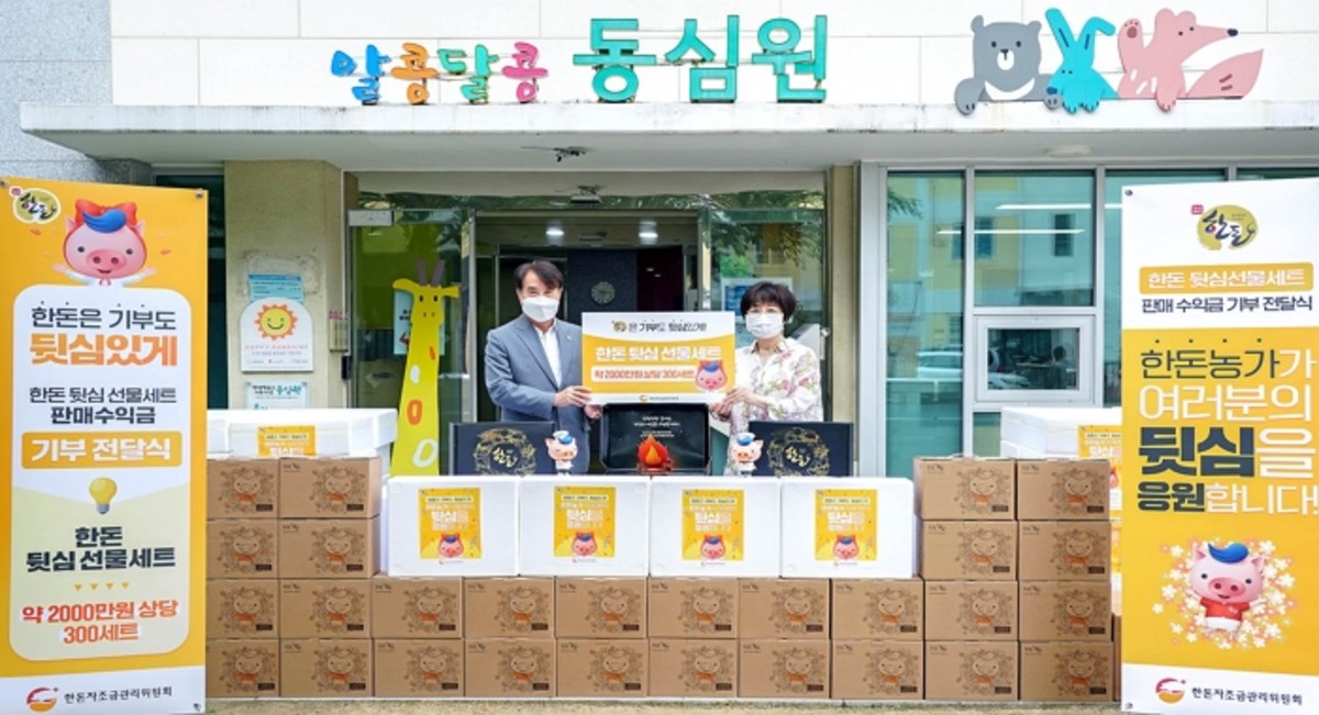 한돈자조금은 재원아동과 직원을 위해 '한돈 뒷심 선물세트'를 비롯해 저금통, 피규어, 핸드크림 등이 들어있는 한돈 굿즈를 함께 전달했다.