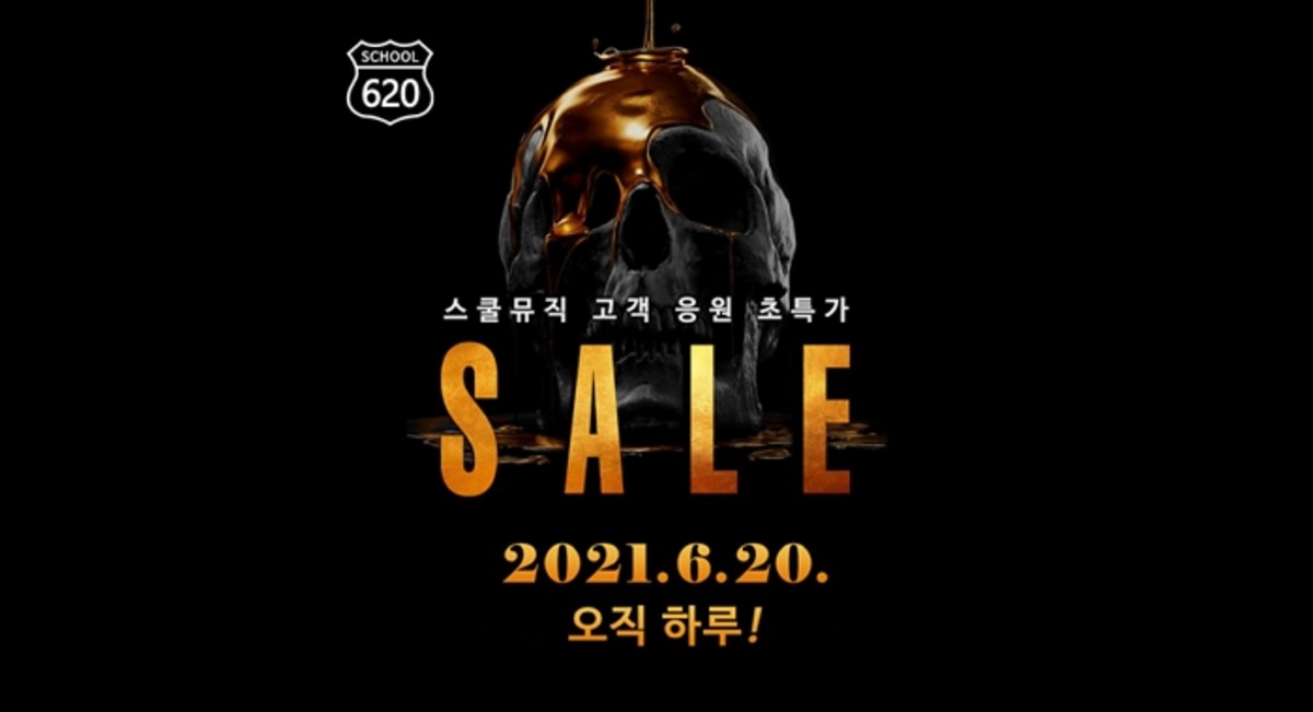 '스쿨뮤직 620 세일' 행사는 오는 20일 일요일 자정부터 24시간 동안 스쿨뮤직 홈페이지에서만 진행되며 오픈마켓과 오프라인 매장에서는 진행하지 않는다.