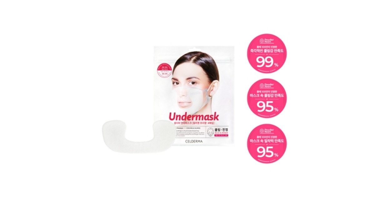 셀더마 '언더마스크'는 쿨링 에이전트가 함유된 하이드로겔 코팅 마스크가 즉각적인 쿨링 효과를 선사해주며, 티트리 추출물과 알란토인, 감초산 성분 등을 함유해 마스크 속 달아오른 피부를 진정시키고 수분을 공급해준다.