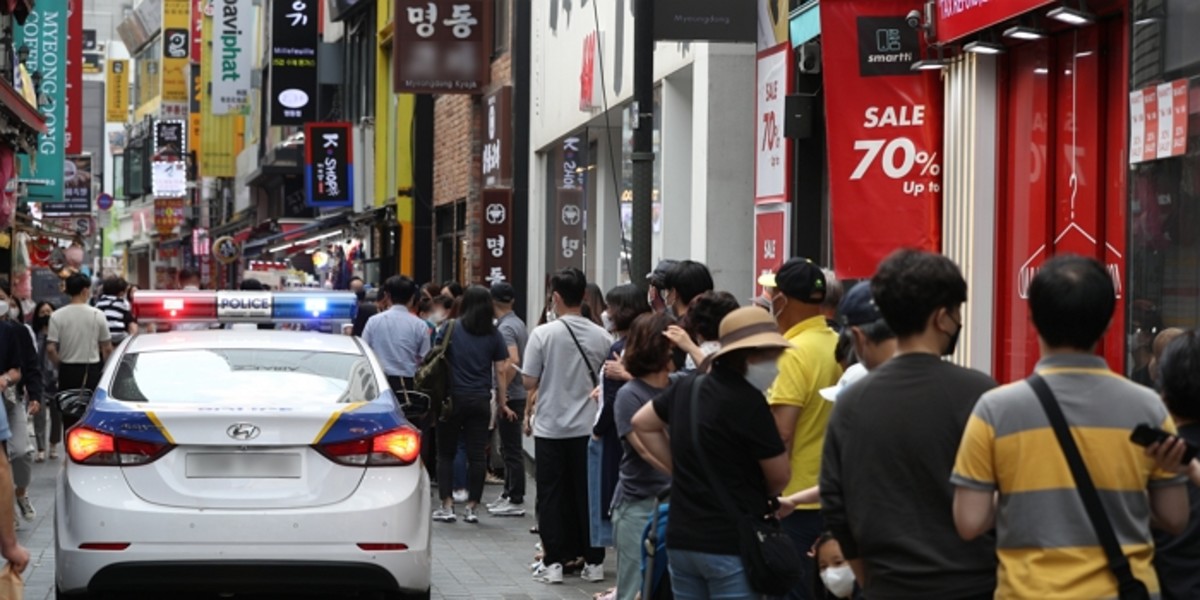 경찰은 늘어선 인파를 향해 거리두기를 지켜 달라는 방송을 했다. 직접 대기줄로 다가가 시민들에게 손짓하며 거리두기 준수를 촉구하는 경찰의 모습도 포착됐다.